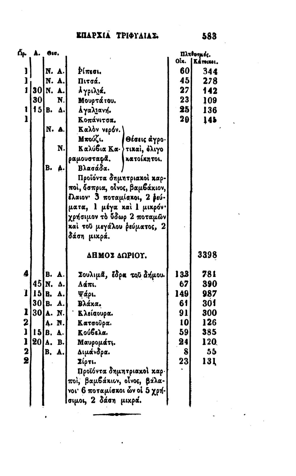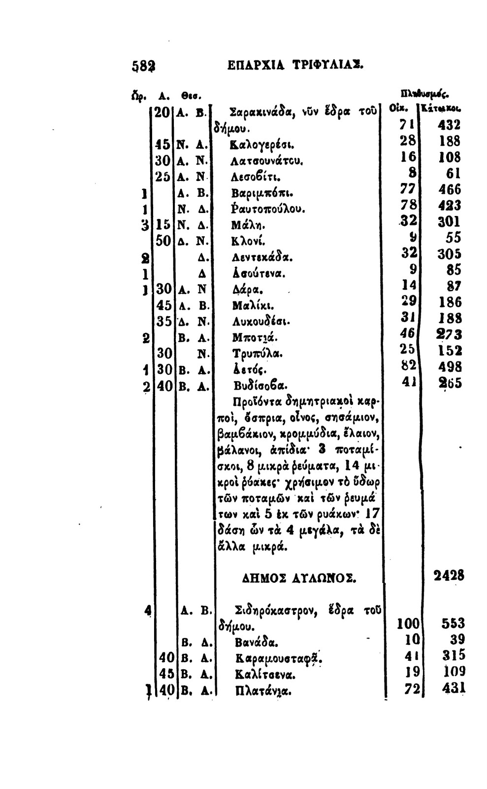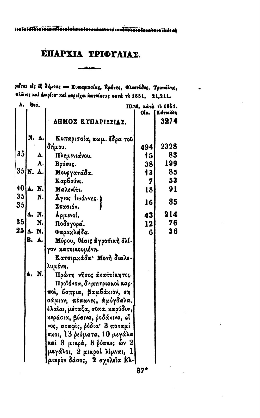 Το 1851 η Βάλτα, ως χωριό του δήμου Εράνης έχει πληθυσμό 66 κατοίκων και 30 σπίτια. Οι Γαργαλιάνοι με 1669 κατοίκους υπάγονται στο δήμο Φλεσιάδος με πρωτεύουσα τη Λιγούδιστα (Χώρα).Πηγή: Τα Ελληνικά, Ιάκωβου Ρ. Ραγκαβή, 1853