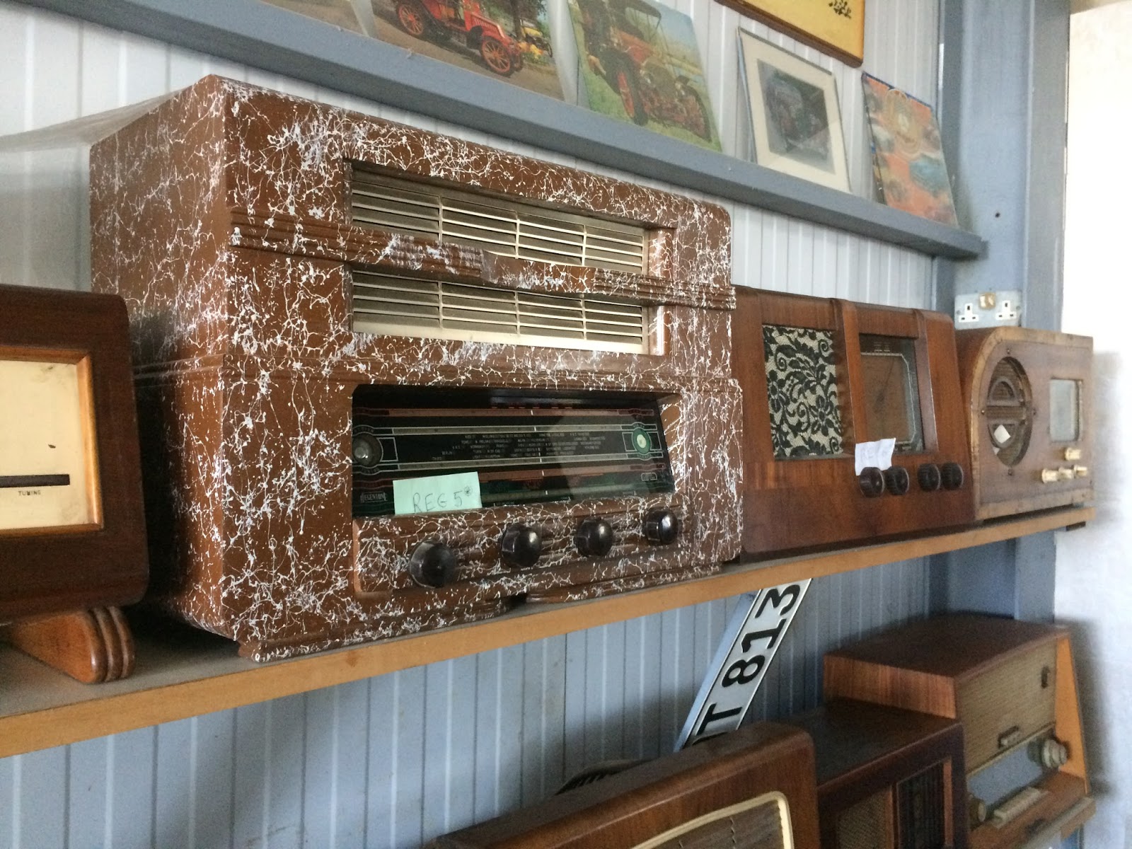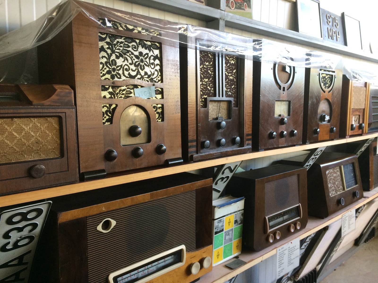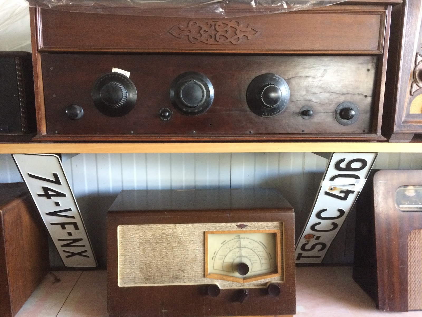 Παλιές ραδιοφωνικές συσκευές γνωστών κατασκευαστών, όπως η Philips και η General Electric, δίπλα