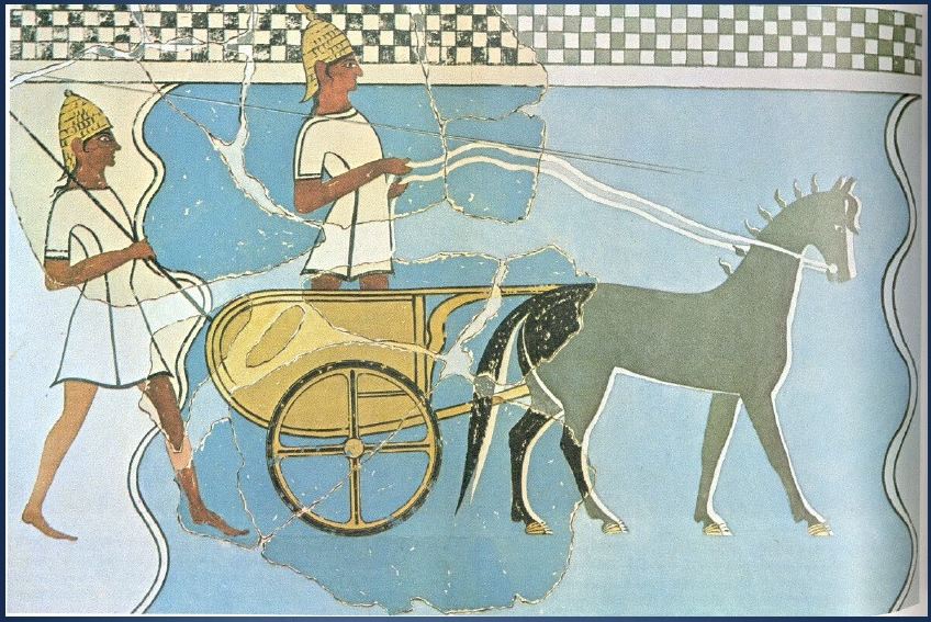 | Νωπογραφία του ανακτόρου του Νέστορος Ταυροκαθάψια Οι ταυρομάχοι φορούν μινωϊκά ενδύματα. |