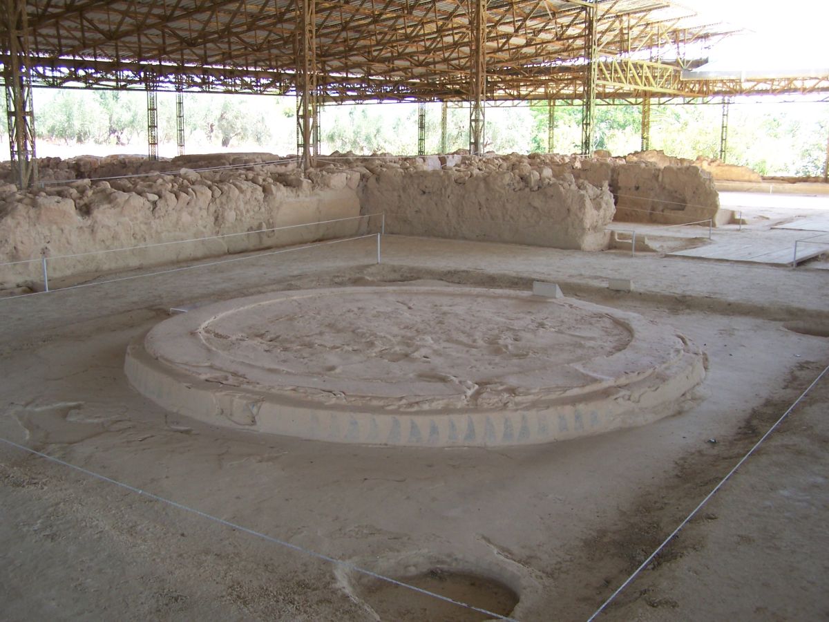 Στο κέντρο της αίθουσας του θρόνου, βρίσκεται η μεγάλη εστία, διαμέτρου