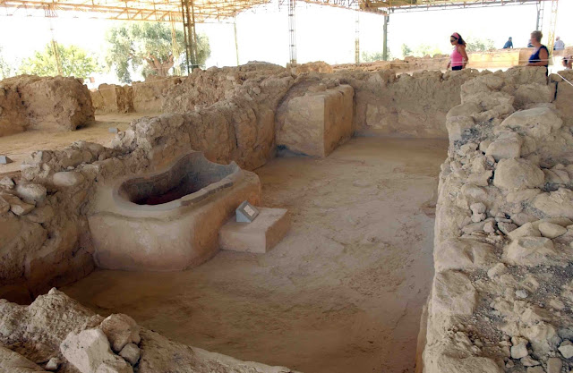 δωμάτιο, το οποίο διατηρεί στην αρχική τους θέση έναν πήλινο λουτήρα,