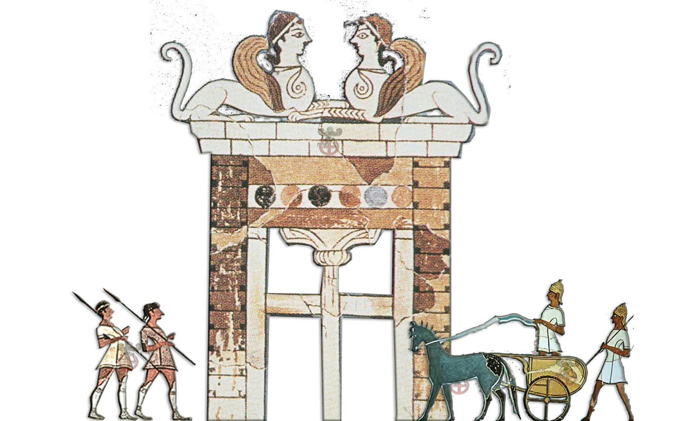 | Η Πύλη των Σφιγγών και Έλληνες στρατιώτες του Νέστορα -ΓΡΑΦ.ΑΡΧΑΙΟΓΝΩΜΩΝ |
