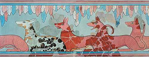 | Ανάκτορο του Νέστορα Ζωφόρος με τα σκυλιά από το ανάκτορο της Πύλου (σύμφωνα με τον ML Lang, στην Πύλο στη Δυτική Μεσσηνία Ι (1969) |